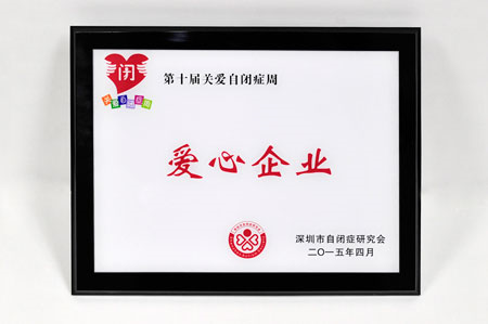 (京基地产被授予“第十届关爱自闭症周-爱心企业”荣誉奖项)