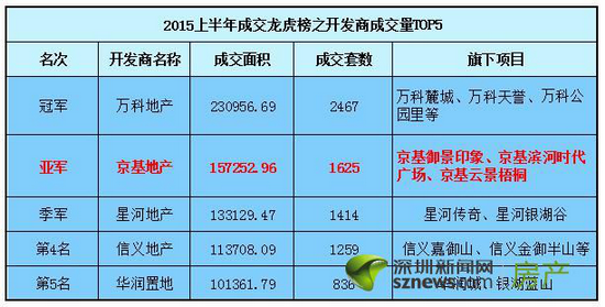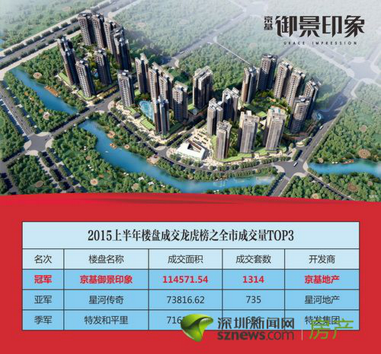 京基·御景印象以压倒性优势夺取2015年深圳市上半年成交量冠军