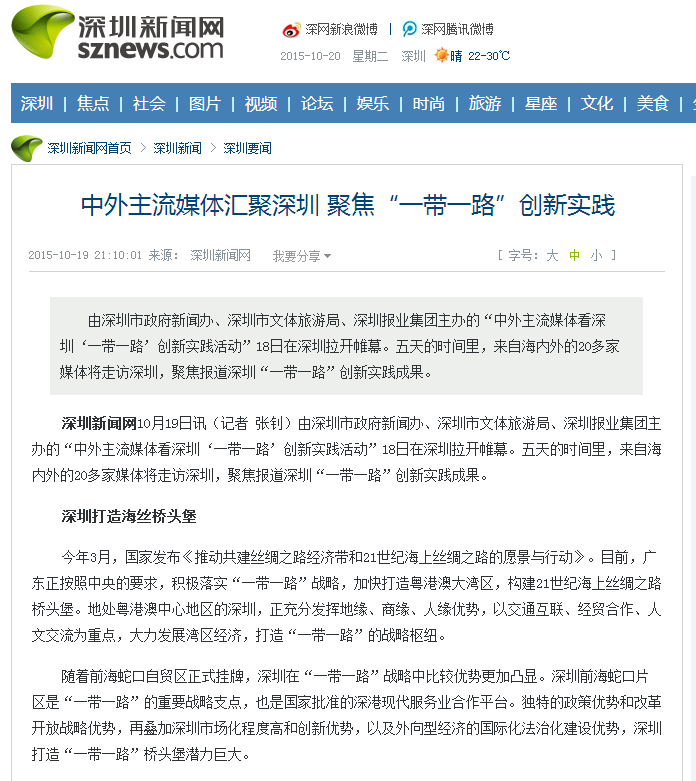 【深圳新闻网】中外主流媒体汇聚深圳 聚焦“一带一路”创新实践