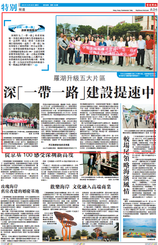 深圳作為「一帶一路」的重要樞紐,其現在就是沿線欠發達地區的未來。記者們一路走一路看,在感受深圳巨變的同時,也對「一帶一路」如何發展有了新的理解。昨日記者團一行,從華僑城歡樂海岸起步,然后登上深圳地標建築京基100,去感受深圳最繁華和現代的一面。之后記者團驅車到達深圳最美海景地--大鵬半島,由舊廠房改造而成的玫瑰小鎮、較場尾一帶,以及由村屋營造出的旅游小墅,都讓記者們赞不絕口。