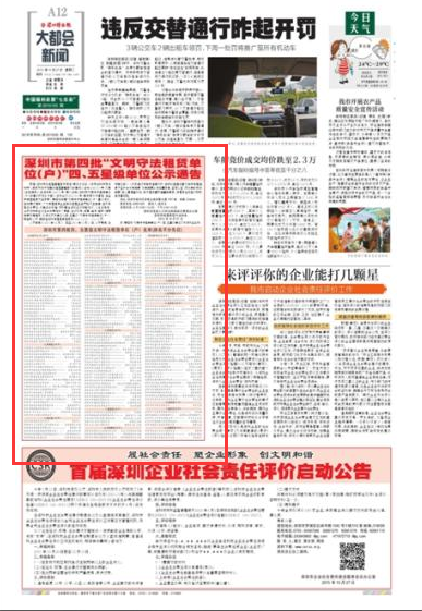 根据《深圳市出租屋管理若干规定》第三十三条、《中共深圳市委深圳市人民政府关于加强出租屋管理服务的意见》(深发[2005]16号)及其《实施细则》(深维综委[2006]6号)第九条和《深圳市文明守法租赁单位(户)创建达标评比方案》(深综治办[2013]19号)等法规文件精神,在全市房屋租赁行业开展了第四批创建“文明守法租赁单位(户)”星级评比,在创建过程中,广大房屋租赁企业和出租屋业主严格行业自律,主动承担社会责任,化解社会矛盾,积极配合深圳经济转型升级,为社会稳定、治安好转和经济社会发展作出了贡献。经过动员、创建、自评、申报、推荐和审核等程序,拟评出下列单位为四、五星级“文明守法租赁单位(户)”,现登报公示,同时在深圳房屋租赁信息网(www.szfwzl.com)公示。